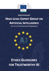So in theory, for the FRIA, you should evaluate all these rights carefully and make sure your application does not have any impact on these official rights. This is however not a practical way of doing it since the impact of AI on fundamental rights is often indirect. It is better to take a list of more concrete principles that are easier to consider and apply, and use these in a FRIA. The European Union formed a ‘high level expert group’ (HLEG) of AI experts and they published a document called the Ethics Guidelines for Trustworthy AI. This is an important document that you should read when making a FRIA. We also use this in our human centred AI summer school. This document contains seven principles and 23 more detailed concerns that show what is exactly included in each principle. You should discuss each principle in your FRIA, explain using the process description and known AI risk whether there is a risk of infringement of human rights, and explain what you are doing to control or mitigate the risk. Below are the principles: